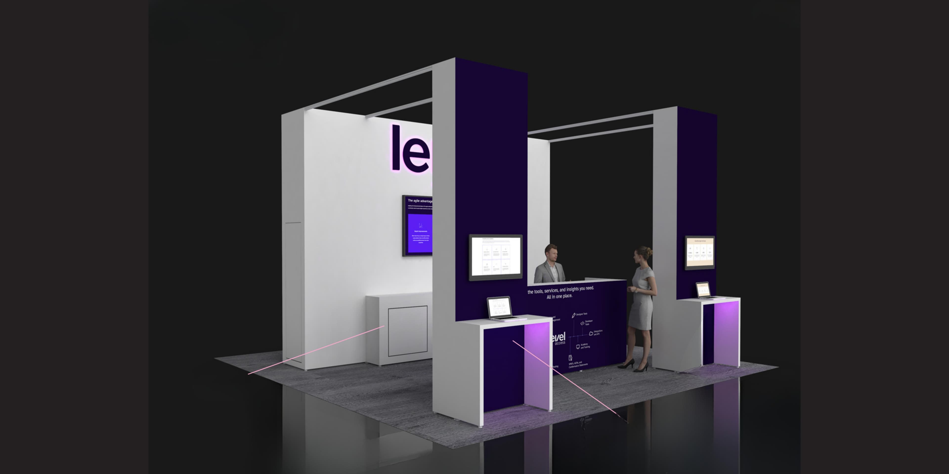 Balancing aesthetics with functionality, we skillfully address challenges to construct a booth that stands out amidst the vibrant tradeshow landscape.